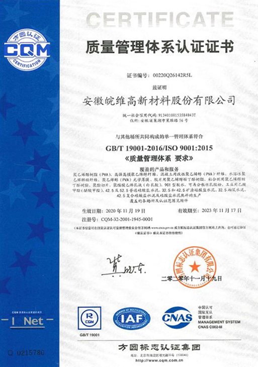 质量管理体系认证证书