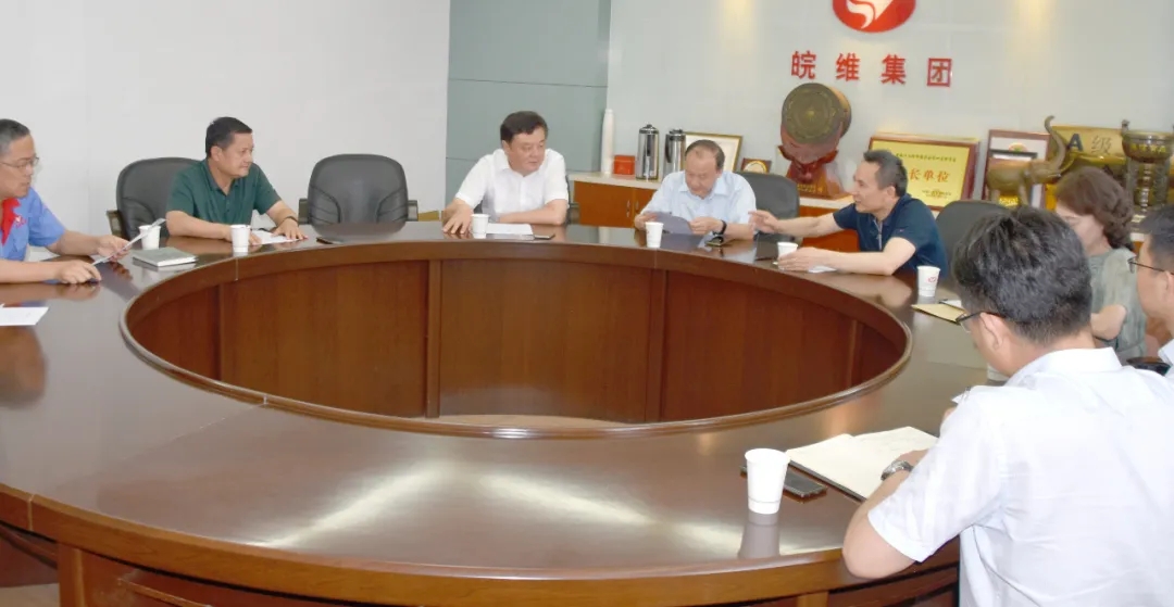 6月8日下午,安徽工业经济联合会会长张德山、副会长昝向明、秘书长缪静林一行来尊龙凯时调研。集团公司党委书记、董事长吴福胜,股份公司常务副总经理王松苗,集团公司副总工程师柳巨澜等接待并举行座谈。