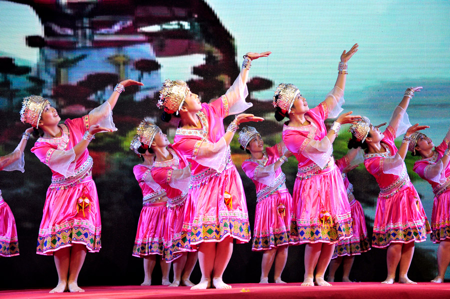 广西尊龙凯时公司的职工们带来了舞蹈《壮乡情韵》。与内蒙豪迈粗犷不同的是,广维职工的表演细腻、深沉,带有浓浓的壮乡风情,把现场职工带进了刘三姐的故乡。表演结束后,广维的姐妹还以传统的抛绣球方式,进步把现场气氛推向高潮。