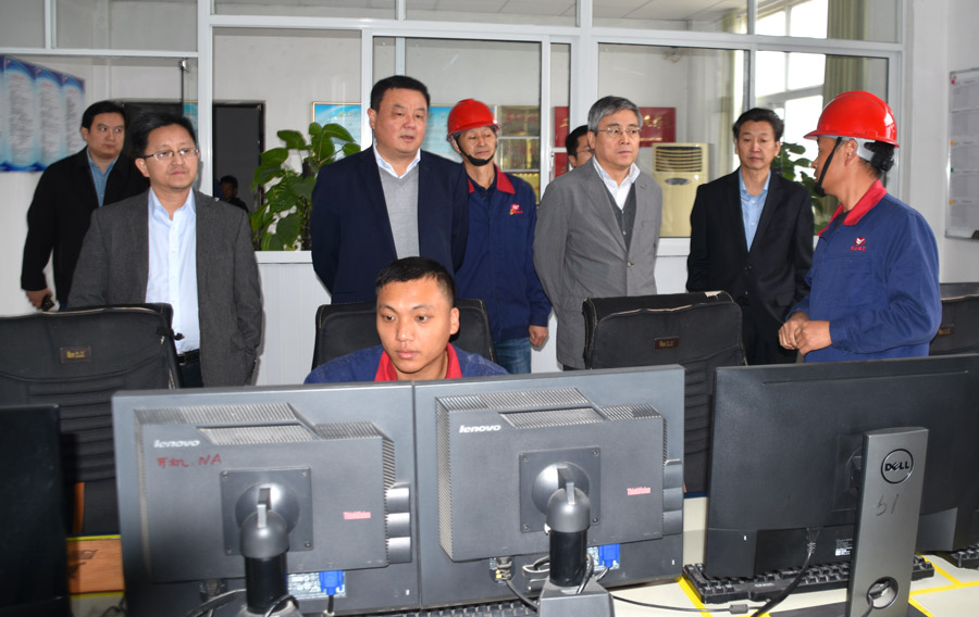 王文松深入花山公司的包装车间、中控室等生产现场,实地了解了生产情况,详细询问了产品的相关情况。