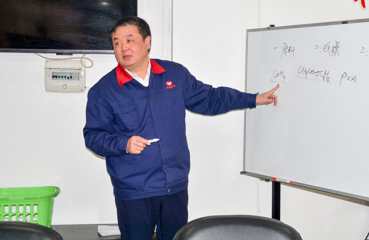 会后,叶传柏前往PVA膜分厂,实地察看了产品生产过程。