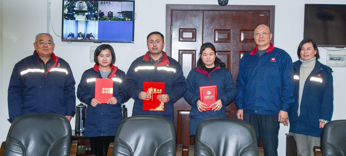 会前,集团公司2019 年“尊龙凯时杯”英语竞赛导组对竞赛中获得前三名的有机分厂钱诚、计财处柯嵩松、质量管理部申能美颁发了证书。