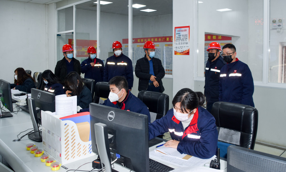 高申保分别到生产部、聚酯分厂、煤场、水泥分厂等单位,检查疫情防控工作和当前生产情况。高申保要求各单位负责人做到时间放假,思想不放假,在做好疫情防控工作的同时,生产、销售、检修等工作必须提前布局、统筹安排,为完成年度目标任务打下坚实基础。