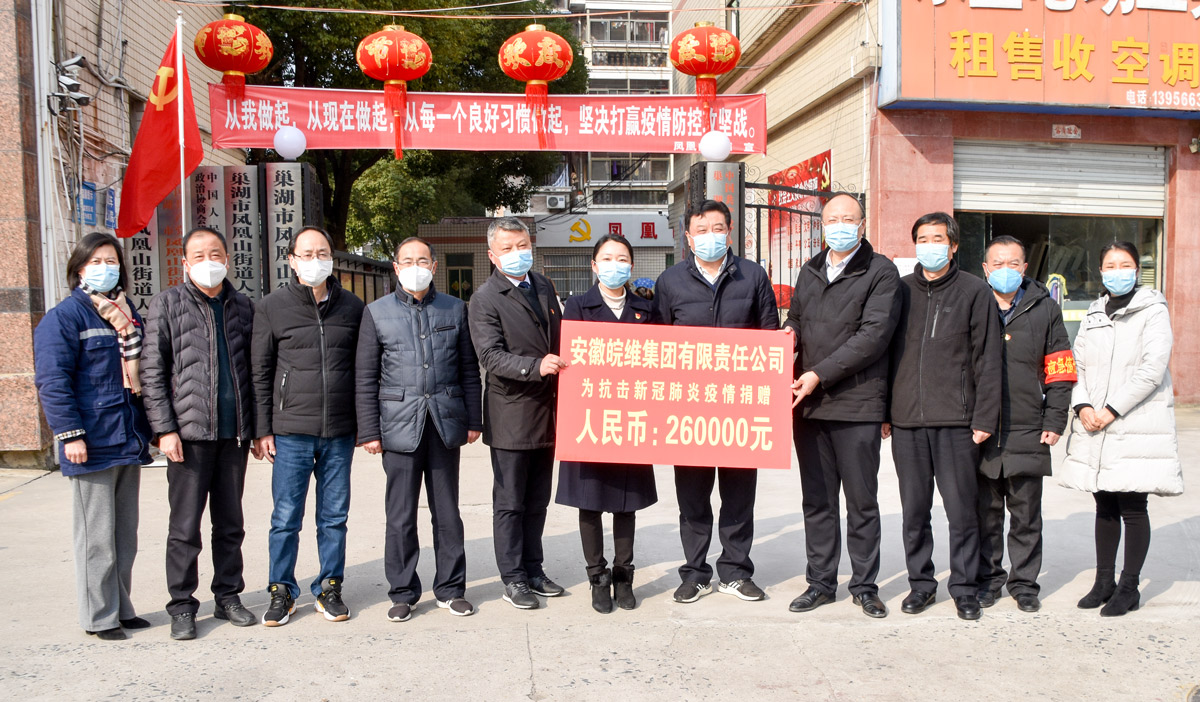 2月21日下午,集团公司党委书记、董事长吴福胜,党委副书记张正和,副总经理刘帮柱行前往凤凰山街道,捐赠26万元用于新冠肺炎疫情防控工作。