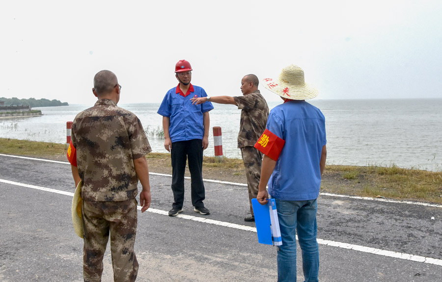 突击队此行任务是以三班倒的方式轮流驻守巢湖大堤,负责处875米堤段的全天候巡堤排险。突击队到位后,迅速进入阵地,投入到巢湖大堤巡检排险工作中。