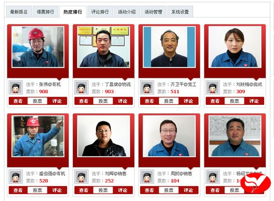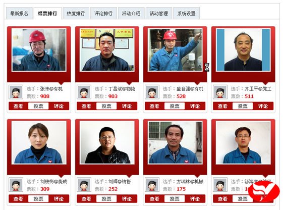 在得票榜中,机械设备公司方瑞林闯入前8名,大有后发制人之势;在人气榜中,制成分厂杨绍文也挺前8强,实属不易。